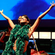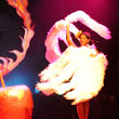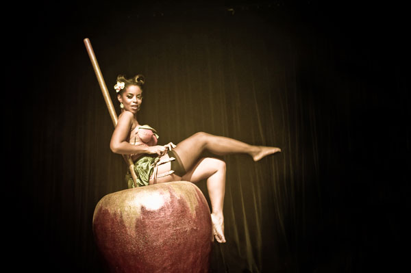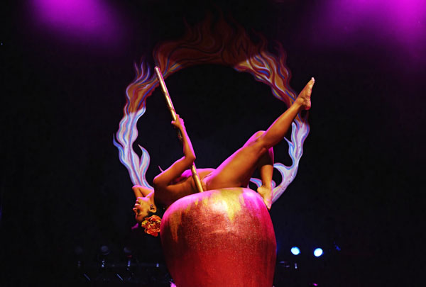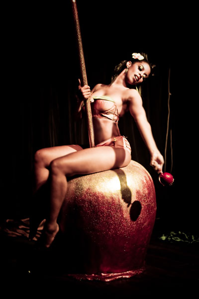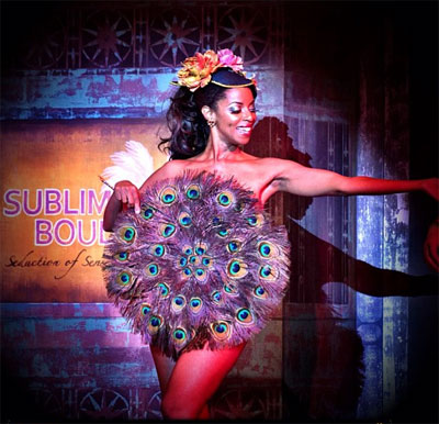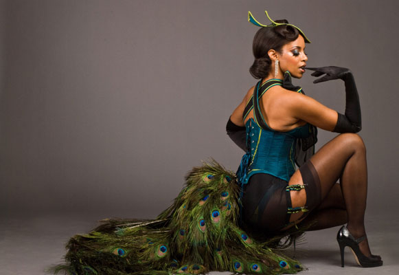 Coco is known around the world for her outsized stage presence, large signature props, and custom costuming sparkling with Swarovski crystals. Some of her most requested acts include a giant candy apple, a lavish peacock train, a giant telephone and address book set, the city’s largest ostrich boa fans, and so much more. Have are some of Coco’s favourites.